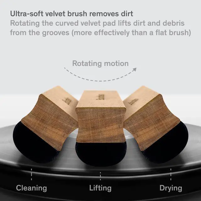 ^^ Ultra-soft velvet vinyl brush & cleaning solution remove dirt Rotating the curved, non-scratching velvet surface of our record cleaner brush effectively lifts dirt and debris from the record grooves (compared to a flat record cleaning brush which can push it back in). Our record cleaner fluid penetrates the grooves to extract built-up grime, dust and fingerprints, while never harming the vinyl surface. ^^ Risk-free purchase We spent countless hours developing and testing our vinyl cleaning kit to ensure long-term performance and durability. Our goal is complete customer satisfaction, or were happy to offer an easy return.