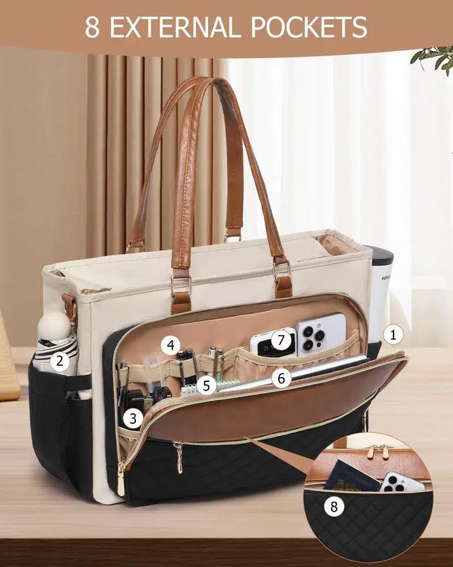 ^^ Durable design: This quilted tote bag combines comfort and durability, featuring sturdy and wear-resistant quilted fabric, widened PU leather handles, and high-quality zippers for smooth operation. This carry-on tote is the woman's perfect choice for both style and organization.