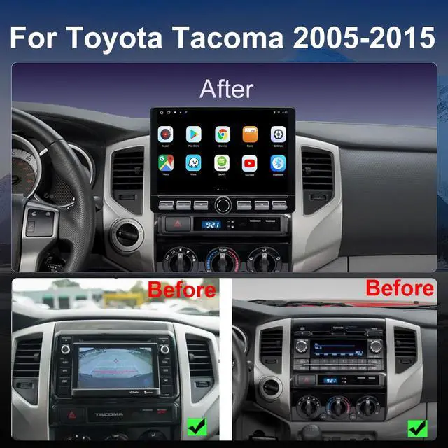 Perfect Fit for Your Toyota Tacoma Custom Design for Toyota Tacoma 2005 2006 2007 2008 2009 2010 2011 2012 2013 2014 2015. Package come with everything you need to install. No modifications or wiring hacks neededjust plug in and enjoy a factory-fresh upgrade. Clear instruction and user manual support you install the stereo all by yourself. ^^ Wireless Smartphone IntegrationEffortlessly connect your smart Phone or Android device with wireless CarPlay and Android Auto. Access your favorite navigation apps, music playlists, and messaging services directly on the in-dash screenno cables required. Enjoy a clutter-free setup and a safer, more intuitive driving experience.