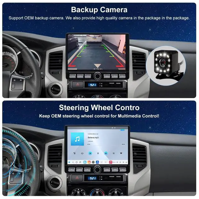 ^^ Retain Your Vehicles Original FeaturesMaintain full control with support for your cars original steering wheel controls, allowing you to adjust volume, change tracks, and answer calls with ease. Plus, it works seamlessly with your existing backup camera, providing a familiar and convenient driving experience.