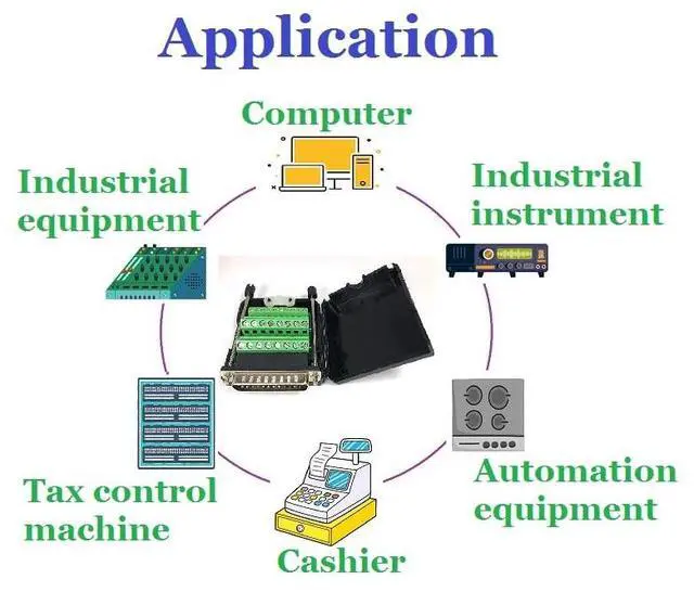 DB25 Female Type, Data Application, Computer DB25 Parallel / Serial Connection Type. ^^ Converts a DB25 Female to a 25-Position Screw Terminal Block and Housing.