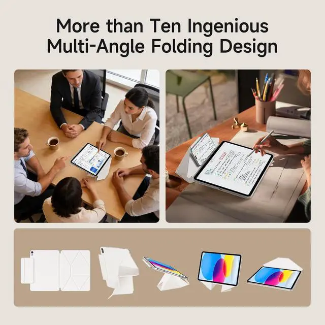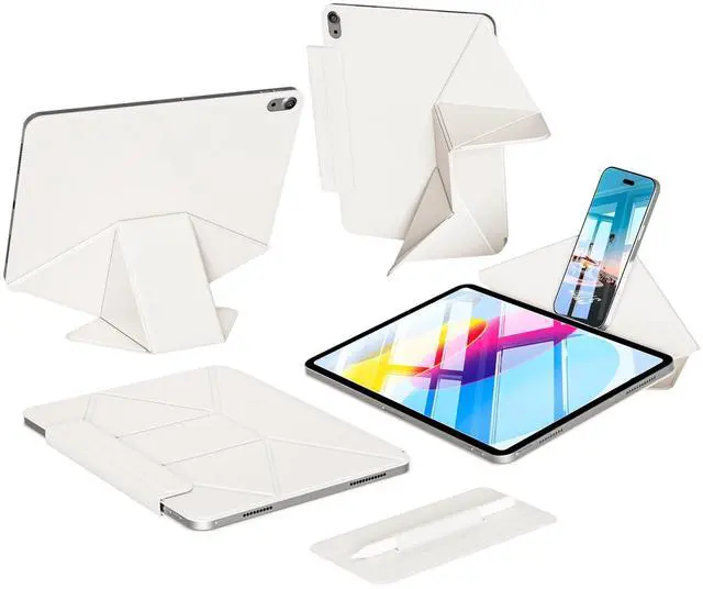kenke Magnetic Case for iPad 11 Inch A16 2025/10th Generation 10.9 Inch 2022 with Detachable Clasp, Slim Strong Magnetic Multi-fold Stand Cover with Pencil Holder, Auto Wake/Sleep, Cream White