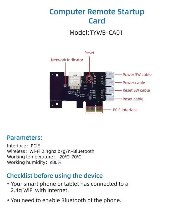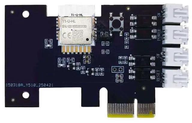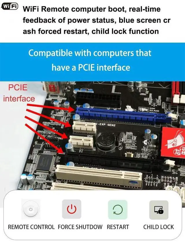 "Zigbee Wireless Remote Control for Computer Power/Reset Switch An excellent device to prevent electric shock and for computers with hard-to-reach power/reset buttons (e. g., under a desk). Whether you're at the office or on a business trip, you can control your computer anytime with this switch card. ^^ "Wide Compatibility Suitable for all computers with a PCIe socket. Use with TeamViewer software to transfer data at any time. " ^^ "Safe and Stable Operation Features dual power channels that do not interfere with the original power key. Never loses signal or becomes loose.