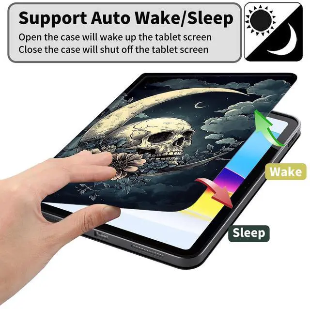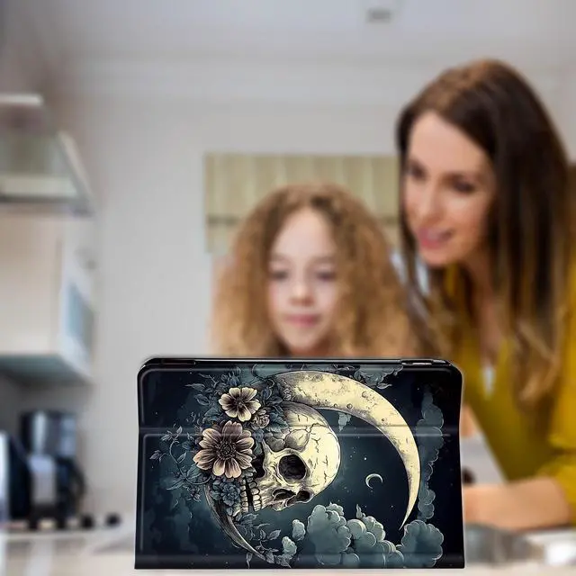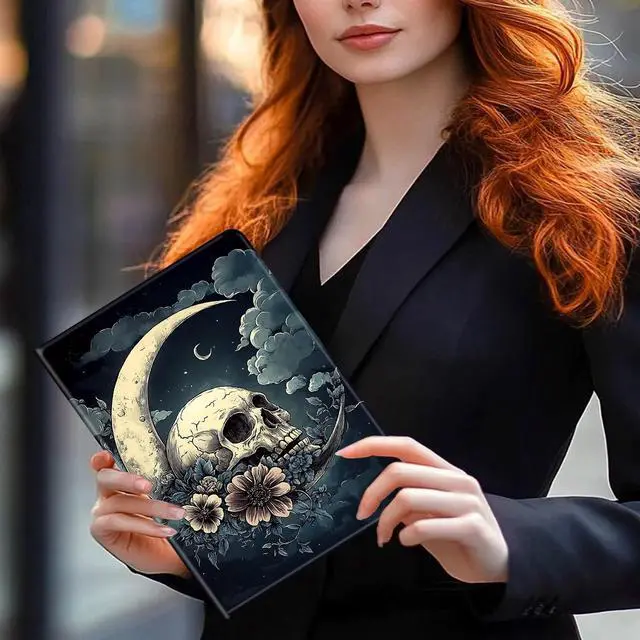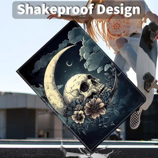 NLZQTTBD Case for Kindle Fire HD 10 and Fire HD 10 Plus 10.1" Tablet Case (13th/11th Generation 2023/2021 Release), Slim Fit PU Leather Cover with Auto Sleep/Wake - Skull On The Moon