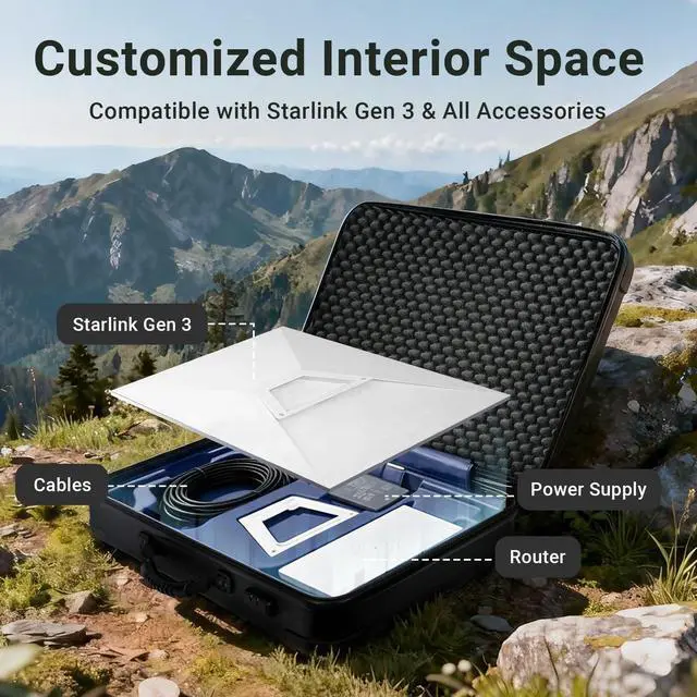 ^^ Shockproof & Water-resistant: Constructed from robust ABS with reinforced corners, it offers shockproof and water-resistant performance, serving as a storage case compatible with Starlink accessories during daily use and outdoor adventures.