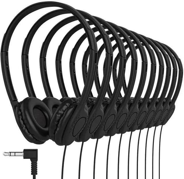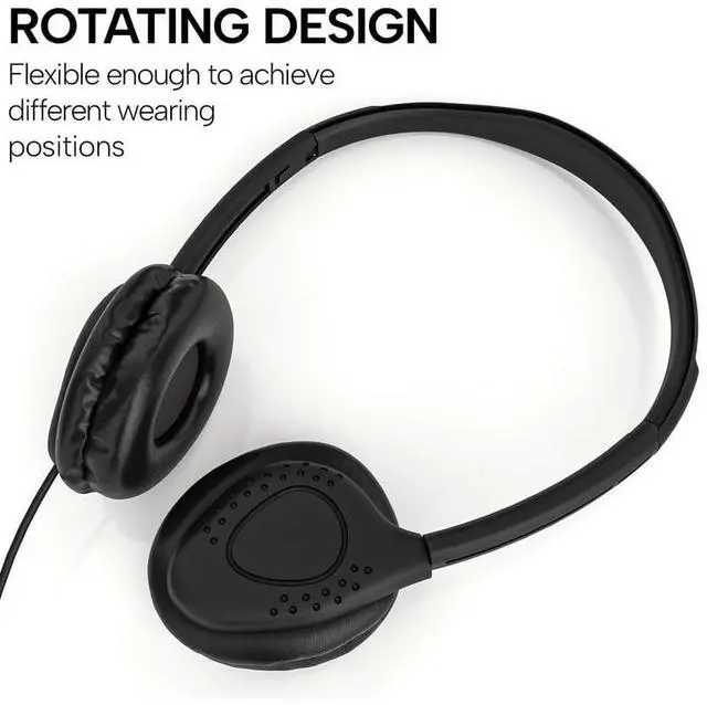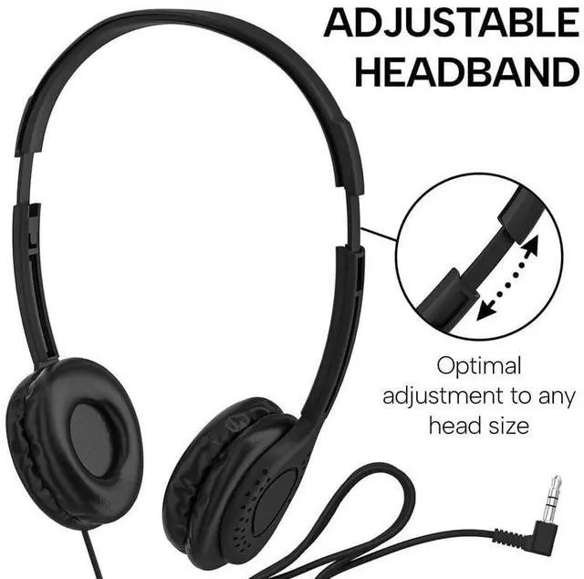Our headphones feature a kid-friendly design that is perfect for users of all ages. They are ideal for airplane travel, school classrooms, libraries, museums, and various learning and testing environments. Each package includes 10 black headphones, with each headset individually wrapped for convenience. ^^ Maeline Headphones are designed for long-term comfort. Fit perfectly on your ears and provide a comfortable listening experience you can use all day. The soft leatherette ear cushions prevent sound leakage, reduce noise and improve the fidelity of music. ^^ Retractable and adjustable headband ensures optimal fitting.