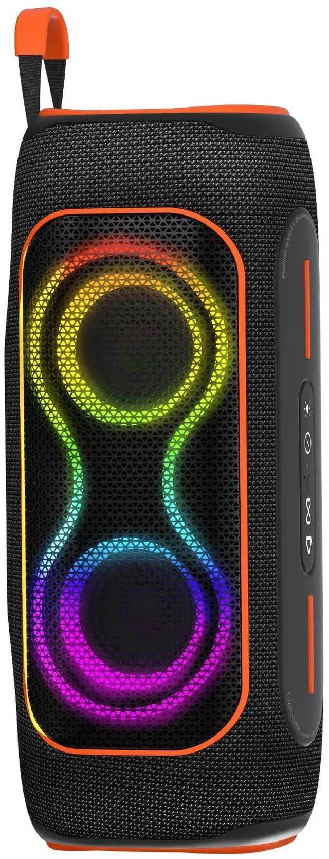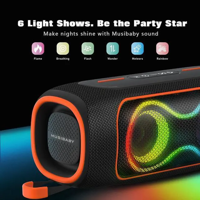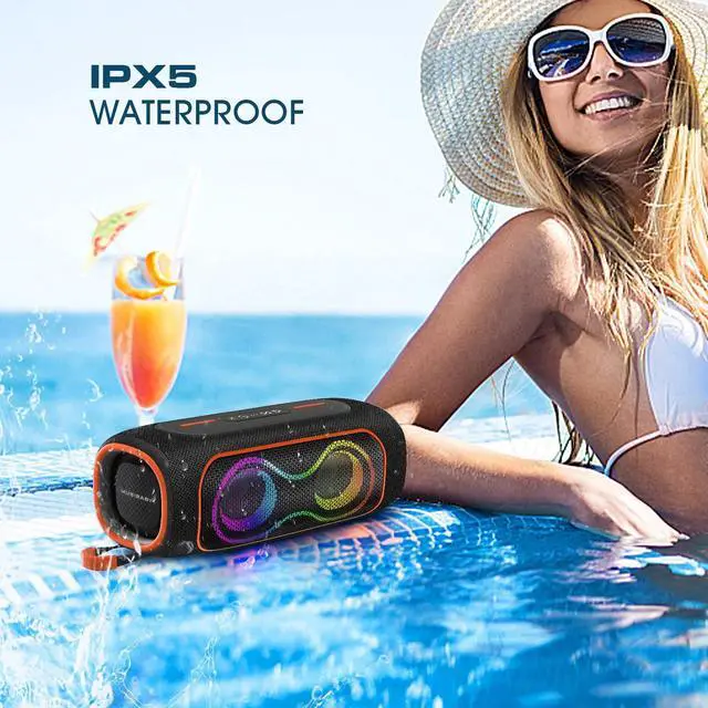 IPX5 WATERPROOF OUTDOOR DESIGN: Designed for outdoor use, the IPX5 waterproof splash-resistant design protects against rain and water splashes. Ideal for beach days, camping trips, backyard gatherings, and travel. ^^ RGB LIGHTS, STEREO