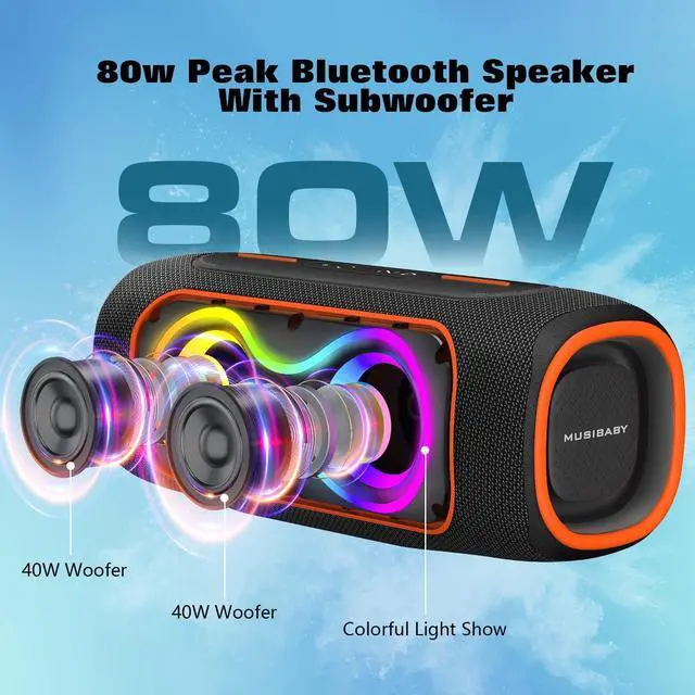 POWERFUL SOUND: Experience powerful 80W stereo sound with enhanced deep bass and clear highs. This loud portable Bluetooth speaker fills indoor and outdoor spaces with rich audio, making it great for backyard gatherings, camping trips, and everyday music. ^^