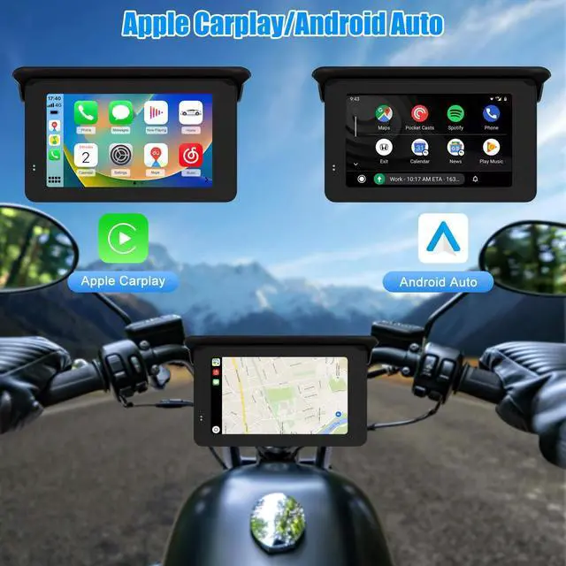 Wireless Apple CarPlay & Android Auto Screen for MotorcycleWireless CarPlay & Android Auto connection takes the things you want to do with your phone while motorcycle riding and puts them right on this smart touchscreen, you can gps navigation, make calls, enjoy your favorite music etc. With Siri Voice Control or Google_Assistant, control the unit with a word or a touch, free your hands so you can focus on the road and ride safely. ^^ 5 Inch Big Touch Screen The motorbike carplay equipped with 5-inch IPS screen with 1024*600 resolution, wide viewing angle, high definition, quick response.