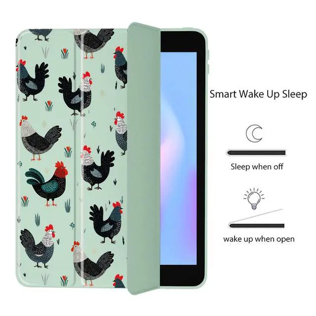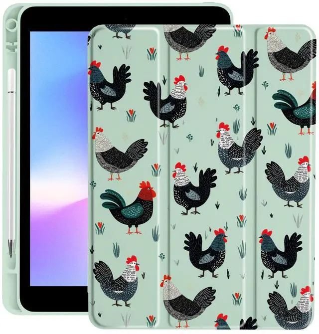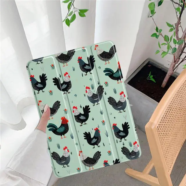 LuGeKe Rooster Case for iPad mini 6 Unique Case,Pencil Holder & Clear Acrylic Back & Trifold Stand Cover for Women