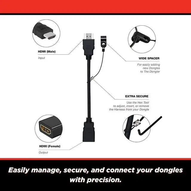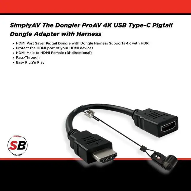 High-Performance - Enjoy ultra-high-definition visuals with HDR for vibrant colors, deep contrast, and crystal-clear picture quality in professional AV setups. ^^ Fast 18 Gbps Bandwidth - Ensures smooth, high-speed video and audio transmission with zero lag, ideal for gaming, streaming, and high-performance AV systems. ^^ Pigtail Dongle with Secure Harness - Flexible, durable harness minimizes stress on HDMI connections while preventing accidental unplugging or disconnections. ^^ Universal HDMI Compatibility - Works with TVs, monitors, projectors, gaming consoles, AV receivers, and professional display systems for seamless connectivity.