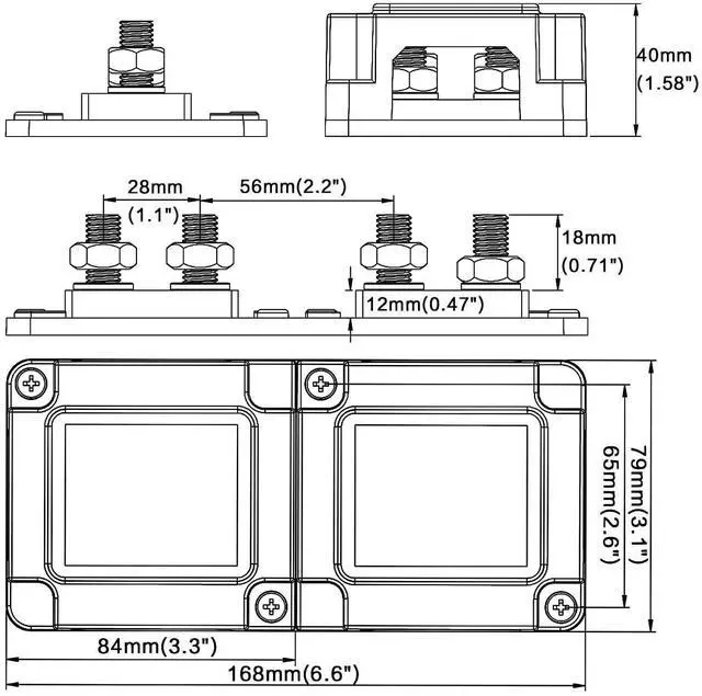 Versatile Compatibility: Our 12v bus bar is ideal for automotive, marine, and solar applications, compatible with 12 V, 24 V, and 48 V DC power systems; It boasts a maximum continuous current of 600 A; Size of each power distribution block is 168 x 79 x 40 mm;