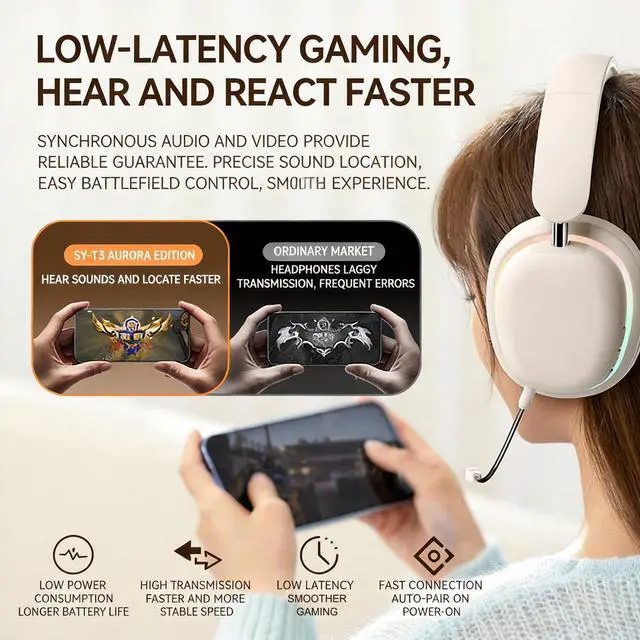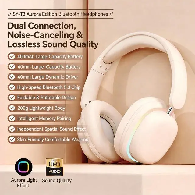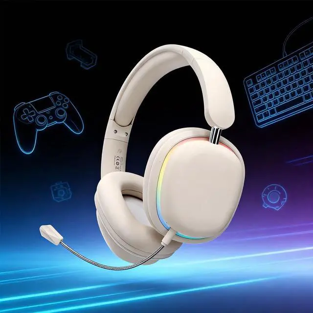 High-Fidelity Sound & Powerful Bass 40mm large drivers deliver rich, detailed audio with enhanced bass for an immersive listening experience. ^^ Bluetooth 5.3 & Dual Connection Enjoy fast, stable wireless connectivity and the ability to connect two devices simultaneously. ^^ Long-Lasting 400mAh Battery Up to 20 hours of continuous use, perfect for extended gaming sessions, travel, or daily entertainment. ^^ RGB Lighting & Foldable Design Eye-catching RGB light effects with multiple modes, plus a foldable, space-saving structure for portability. ^^ All-Day Comfort & Detachable Mic Ultra-soft ear cushions and a lightweight 200g frame ensure comfortable wear.