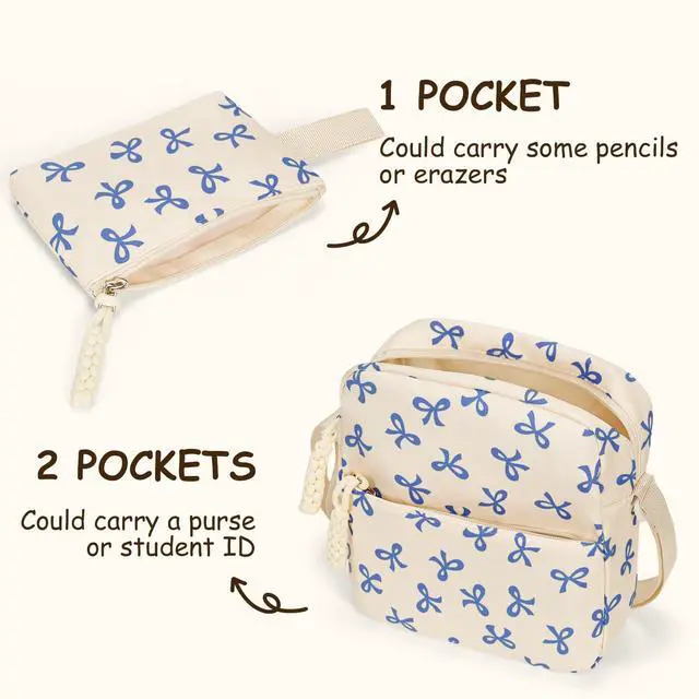 Make up bag: 6.77 x 4.33 x 0.79 inch. ^^ Fashionable DesignWith its simple yet chic decoration, this kawaii daypack set is great for everyday, outings, shopping, parties and travel. Just meet your needs effortlessly.