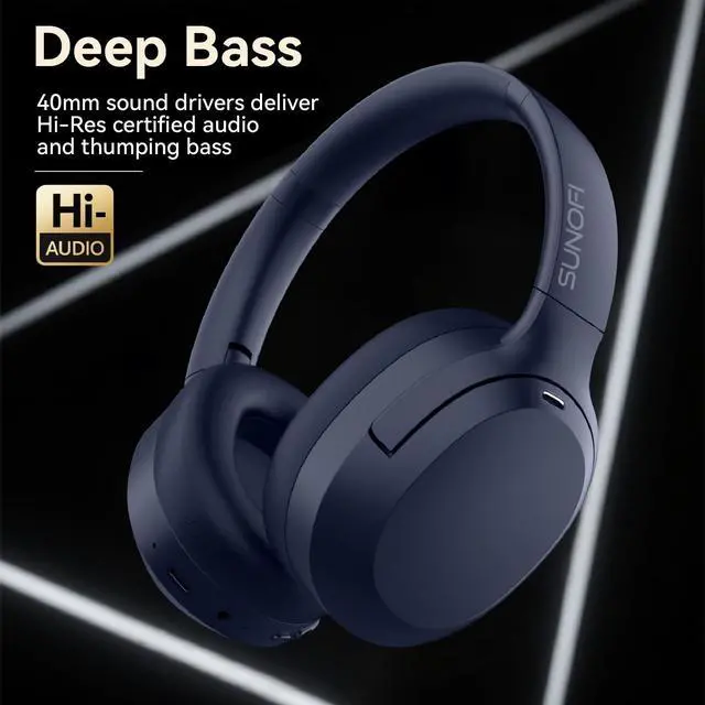 Adaptive Noise Cancellation & Transparency Mode: Switch seamlessly between immersive Active Noise Cancelling and Transparency Mode to match your environmentwhether you're commuting, working, or relaxing at home. Block out distractions or let ambient sounds in with just one tap. ^^ Hi-Res Audio & Deep Bass Performance: Equipped with custom 40mm dynamic drivers, our headphones deliver Hi-Res certified audio and powerful bass. Enjoy every beat, instrument, and vocal with studio-quality clarity and immersive low-end thump. ^^ All-Day Comfort with