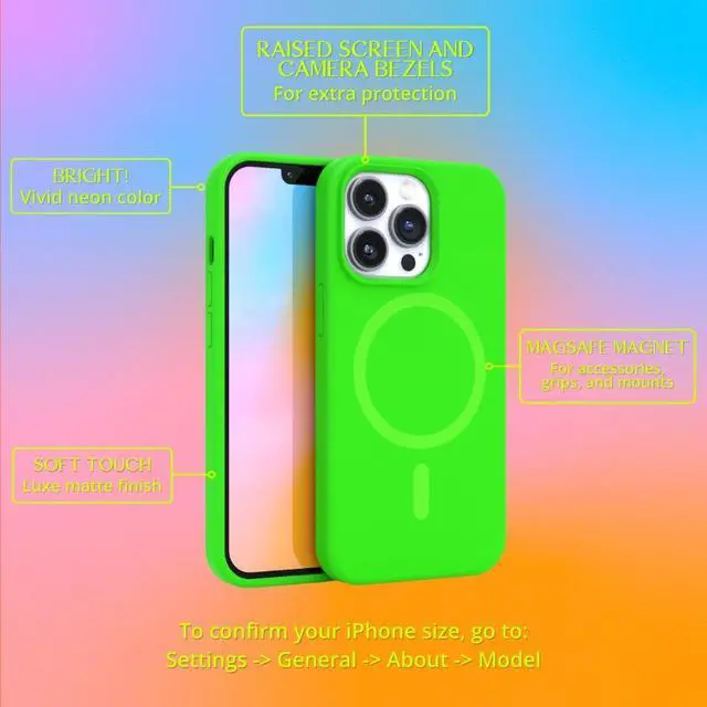 COMPATIBLE WITH MAGSAFE - Our all new iPhone 13 Pro Max MagSafe case enables you to enjoy a faster wireless charging experience with added protection and a sense of style. It features a built-in powerful magnetic ring that offers the strongest magnetic hold on MagSafe wireless chargers and other MagSafe accessories. ^^ BRIGHT AND CHIC NEON COLOR - Our chic and durable iPhone 13 Pro Max silicone case is designed to be a statement piece. It combines premium materials with a beautiful neon color so you can protect your all new iPhone 13 Pro Max in impeccable style.