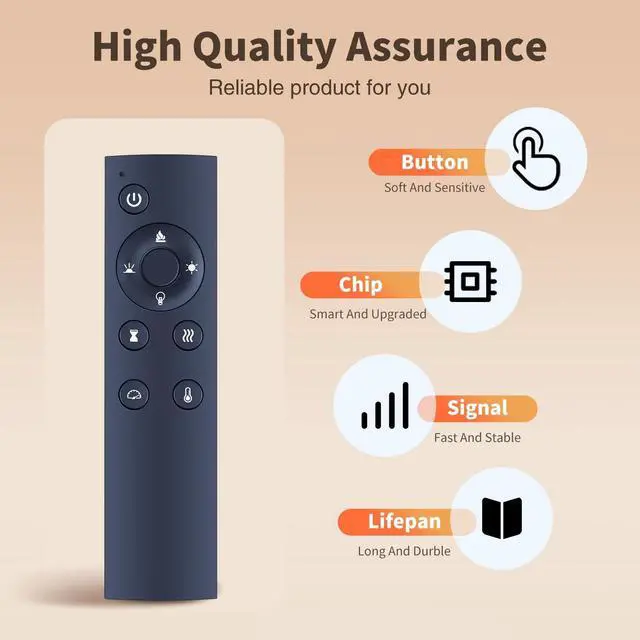 Perfect CompatibilityRemote Control Fit For Electric Fireplace AH-FP-42C AH-FP-50C AH-FP-60C AH-FP-72C JKK60-DBL-SSDQ ^^ Premium QualityWith infrared 3.0 technology and better craftsmanship, the remote control signal stays strong and responds fast to your every movement while it feel great to hold and touch. And its control distance covers 32 feet and an angle of more than 120 degrees, you'll have a great using experience ^^ Easy To UseThe remote control does not need any programming or pairing, just needs to install new batteries and then it can work well for you ^^ PackageNew Replacement Remote Control *1Battery not included ^^ SeviceBringing good products and services to customers has always been our pursuit.