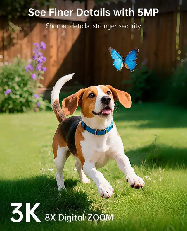 Endless Power for Worry-Free Security-This wireless solar security camera features a powerful 11600mAh battery paired with an efficient solar panel, delivering continuous power without frequent battery recharges. Its two-way installation ensures optimal sunlight making it the perfect outdoor monitoring solution. ^^ 5MP Ultra HD for Clear, Detailed Security- This wifi solar security camera captures every moment in sharp 5MP detail with color night vision, keeping your home safe day and night. Its 135 wide view watches over more of your space with fewer blind spots, while 8x digital zoom helps you see the little details that matter.