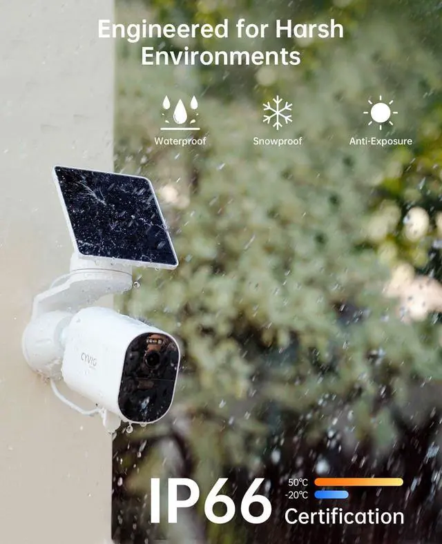 ^^ Two Way Talk & IP66 Waterproof-Stay close to loved ones with clear two-way audio through the built-in microphone and speaker. This wireless cameras for home security has an IP66 weatherproof design, delivering reliable performance in rain, snow, or heat for year-round peace of mind wherever you are.