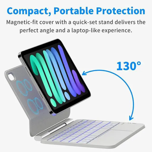 ^^ Built-In Multi-Touch Trackpad: Integrated trackpad supports common iPadOS gestures such as scrolling, swiping, and pinch-to-zoom, allowing smoother navigation without an external mouse.