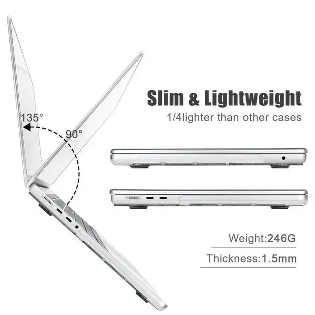 ^^ Design & Function: Two pieces snap-on design, easy to install and take off. The precise cutting design allows you to access all the ports of your macbook Air 15 inch 2025-2023 release. Fully vented for safe heat disbursement. The two rows vent slots at the bottom of the case can easily keep your Air 15 inch M4 M3 M2 device cool. The four raised rubber feet keep your laptop stable and safe. ^^ 4in1 Bundle
