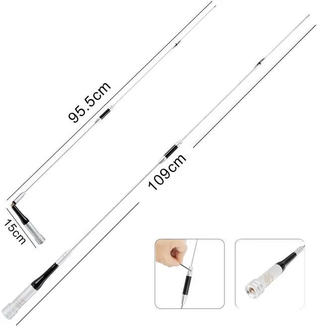 Foldable Design: Antenna has foldable design, it is not necessary to remove the antenna when passing over a height restricted area ^^ Compatible with Motorola Yaesu Motorola Icom Midland transceiver work on VHF and UHF band ^^