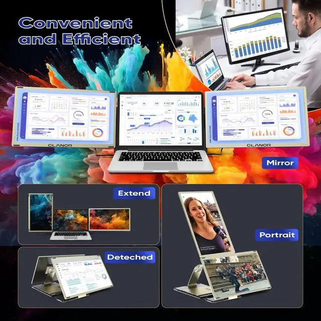 Enhanced Productivity: The S6 Dual Laptop Screen Extender is designed to greatly enhance your productivity by providing you with an additional 15.6 '' triple portable monitor for your laptop. With its plug and play feature, you can easily connect it to your laptop and enjoy a seamless multitasking experience. Whether you're working on spreadsheets, coding, or editing videos, this monitor extender will help you increase your efficiency and get more done.
