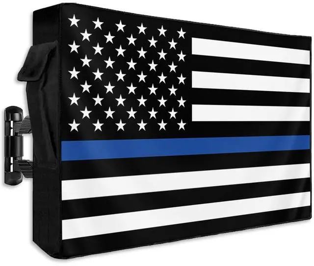 LBCASA American Flag Outdoor TV Cover 40 to 43 Inch Weatherproof, US Flag 600D Oxford TV Covers with Waterproof Zipper, Blue Black Stripes Outside Flat TV Screen Protector Size 40" W x 25" H x 4.5" D