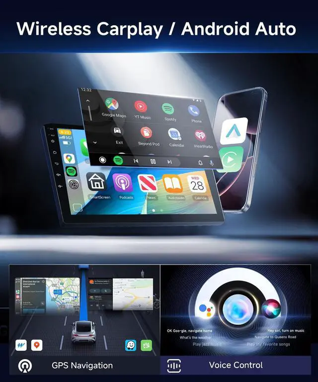 Easily access your phone to make calls, GPS, play music or manage other apps via Siri/G-oogle controls ^^ GPS/Upgraded 5G WiFi/Online UpgradeEquipped with built-in GPS, supports offline/online maps, plus upgraded 5G WiFi for seamless online mapping. Get WhatsApp, YouTube, TikTok and more from the Play Store to enjoy a smarter, more connected driving experience. Support Online upgrade, no upgrade package download requiredwirelessly get the latest, secure software to boost performance, add features & ensure safety ^^ Customizable Interface & ConnectivityPersonalize your driving experience with optional home page app displays and window designs.