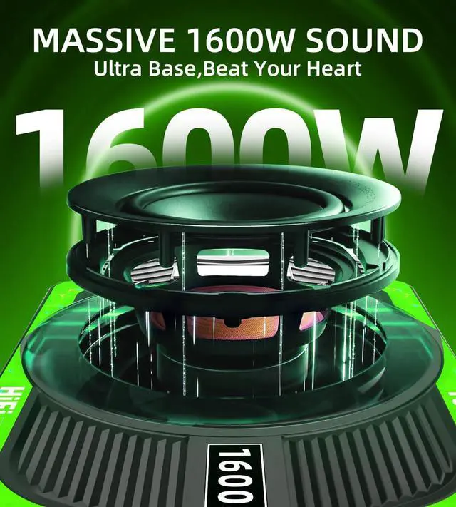 Peak Power & Built-in Amplifier: Features a high-efficiency digital amplifier delivering up to 1600W peak power and 300W RMS, producing powerful and stunning bass that brings hip-hop, EDM, and rock music to lifeno external amp required.