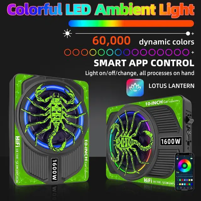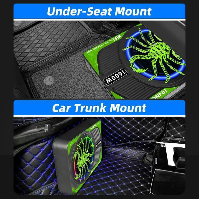 Ultra-Thin Design & Lossless Sound: A 10-inch ultra-thin subwoofer engineered to fit under most car/truck seats. At just 2.76 inches in height, it saves space without compromising sound clarity. High-quality materials ensure rich, distortion-free bass for a fully immersive experience. ^^ 1600W