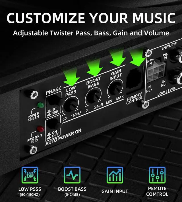 on-the-fly adjustments: bass gain (012dB @45Hz), low-pass filter (50150Hz), and bass boost. Tailor the sound to match your music style with pro-level precision. ^^