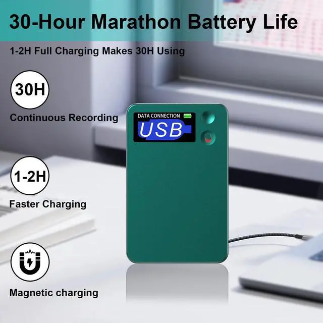 ^^ 30-Hour Marathon BatteryRecord nonstop for 30 hours on a single charge, with quick 1-2 hour recharge. Massive 64GB storage holds up to 480 hours of audioideal for fieldwork, lectures, or back-to-back meetings. ^^ Ultra-Portable & Magnetic DesignSleek 0.13 -inch aluminum alloy body (just 0.07 lbs) with a built-in magnet for easy attachment to metal surfaces. Compact enough for pockets or notebooksready whenever you are. ^^ Everything Included1 POWATE NOTE Recorder +1 Magnetic Ring +1 Charging Cable. - Start Immediately with 400 Free Monthly Minutes for AI Transcription & Summary Services.