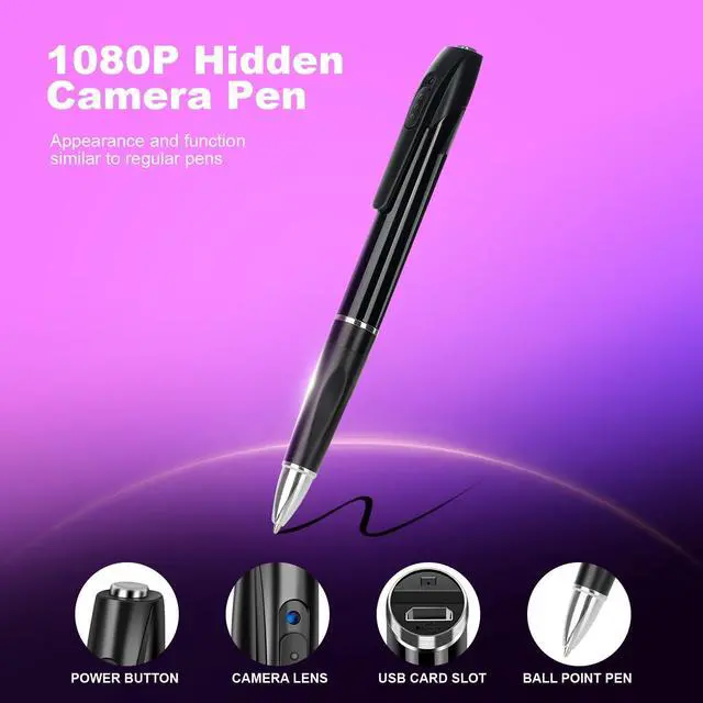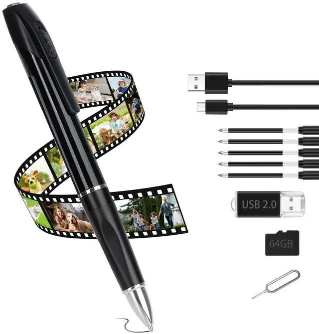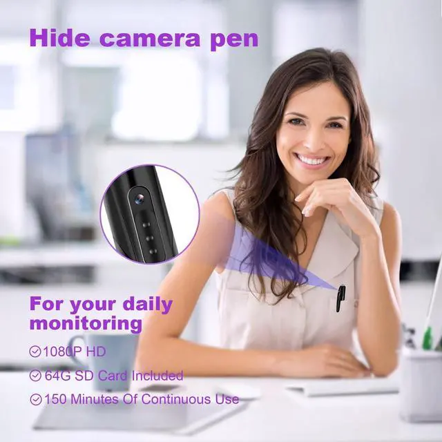 Pen camera: hidden camera with pen, place it on your computer and use it at school, university lectures, or anywhere ^^ Necklace Camera Massive 64GB