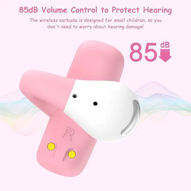 ^^ [Long Battery Life and Smart Touch Control] Wireless earbuds Bluetooth come with 300 mAh charging case that provides 4 full charges for both earbuds, allowing up to 5 hours of continuous use for each earbud. Besides, IPX4 waterproof protects the headphone battery from sweat rain, dust damage. Smart touch control, your child can answer/hang up/reject calls, cancel dialing, previous song, next song, pause/play music, volume up, volume down. ^^ [Advanced Bluetooth 5.4 Stable Connection] Kids headphones use advanced Bluetooth 5.4 technology for one-step pairing and fast connection.