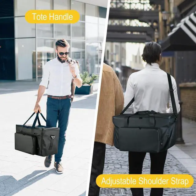 Conveniently transport the speaker when travel, hiking and daily use. Specially designed shoulder pad will relieve shoulder pain, keep comfortable. ^^ Large Capacity Accessory PocketThis speaker bag is featured with one large accessory pocket at front, the size is 13.5X 7.5 inches, large enough to store phones, cables, power bank, charging adaptor and keys, keep all the necessary well organized. There is a separate pocket for storing the microphone and protecting it from scratches.