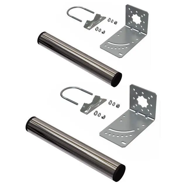 Packing list: 1. Stainless steel Pole 2pcs2. L mounting bracket 2pcs (high quality aluminum) 3. Clamp V Jaw Bracket 2pcs Stainless Steel4. U-Bolt 2pcs Stainless Steel5. Nuts 4pcs Stainless Steel6. Spring washers 4pcs Stainless Steel7. Plain washers 4pcs Stainless Steel8. English User Manual 1pcs