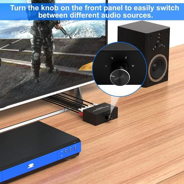 ^^ Passive Audio Switch: no need to connect the power, the operation is simple, that is, plug and play. ^^ No attenuation. Just let you switch between L/R audio cable without hinder you. Effectively avoid frequent insertions. ^^ The R/L audio split box is made of all metal. It is strong and durable, beautiful in appearance, and designed for music hobbies.