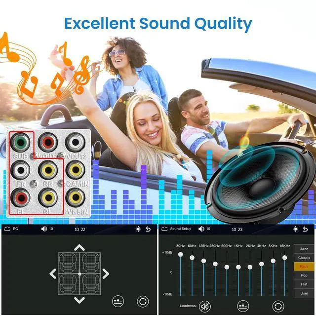 ^^ High-fidelity Sound Quality: With subwoofer output, the double din radio brings excellent sound quality and shocking bass effect. Equipped with multi-band EQ audio equalizer, you can adjust the music effect as needed.