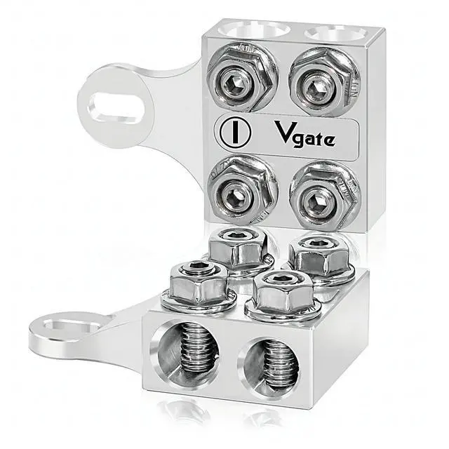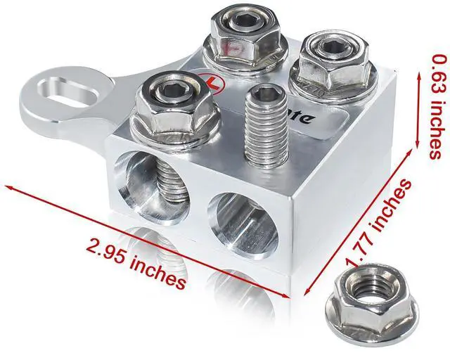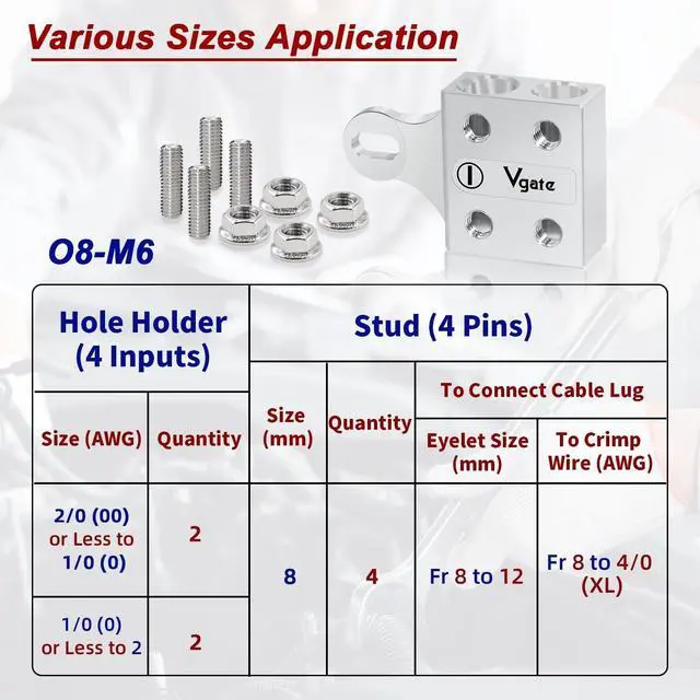 Connectors: 4 x hole-holders and 4 x threaded studs. It contains two 2/0 AWG and two 1/0 AWG hole holders ^^ -