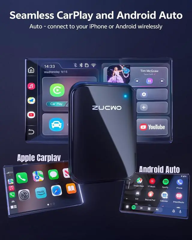 Video Mode: ZUCWO lets you use both wireless CarPlay/Android Auto and its built-in video system. Whether you're navigating with Maps or taking a break with YTB, you can switch modes effortlesslyno reboots required ^^ Faster Connections with