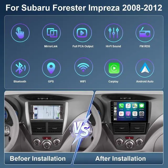 Vehicle Compatibility: Fits for Subaru Forester Impreza 2008-2012 it is easy to install and operate. Please check the year, dimensions and shape of the center console of your vehicles before purchasing. If you are not sure, you can send messages or picture to us, and we will give you advice ^^ Android 13 System& 4+64