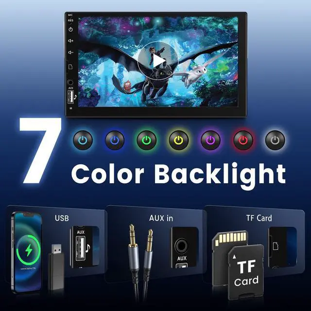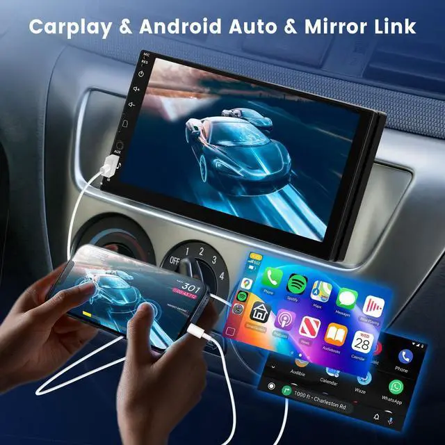 Single Din With Touch Screen 7 inch LCD touchscreen, Colorful backlights adjustable, high resolution make it more clear and delicate, support multi kinds of video format, with song memory record function, FM radio+ bluetooth+ Carplay+ Android Auto + mirror link for Android/iOS+rear view camera input ect. ^^ Car radio with Wireless Carplay, Wireless Android Auto, Mirror Link Cars are connected with smart driving, and enjoy mobile map navigation/ music/ video software and internet radio fuctions.