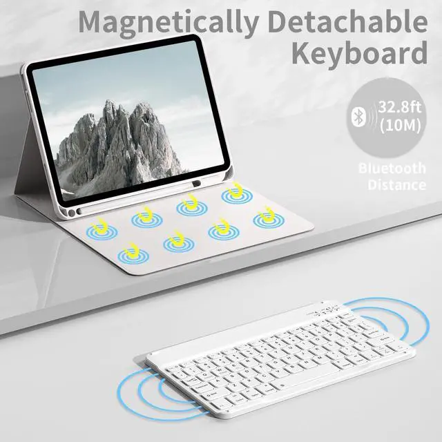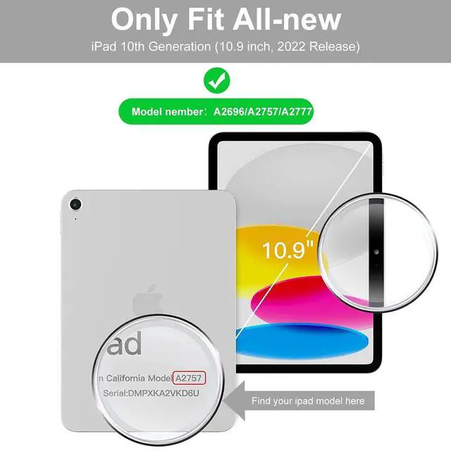 Number: A2696/A2757/A2777). It is Not compatible with any other models. Please check the model number starting with "A" on the back of your iPad before purchasing. ^^ Bluetooth Wireless Keyboard Case- Magnetic compact wireless Bluetooth Slim 6.2 mm keyboard with 10m range, easy to install and remove, can be securely attached to the case, instantly become a portable laptop. Including volume and media controls, brightness adjustment, and more. Keyboard design using scissor-cross low profile structure, enhance the tactility of typing, let you faster and easier to learn and work. Easily prop up your iPad with standing position for enjoy the most comfortable flexible angles. ^^ Quickly Become a Laptop- This ipad keyboard 11th 10th generation will easily turn your iPad into a powerful laptop. Easy to use and portable, suitable for meetings, travel or home, it is a good companion for work and study. This is a great gift option for the loved ones on your holiday gift wish list. Can be given to your familes or relatives and friends as a birthday, Christmas, Thanksgiving, Mother's Day, Father's Day gift.