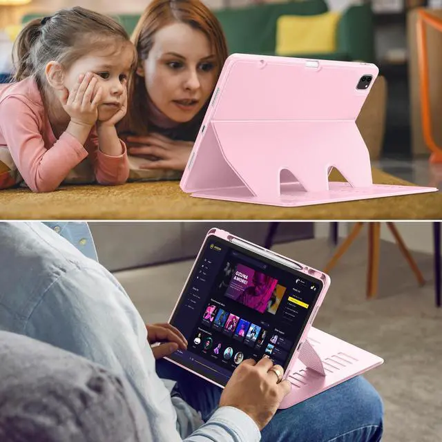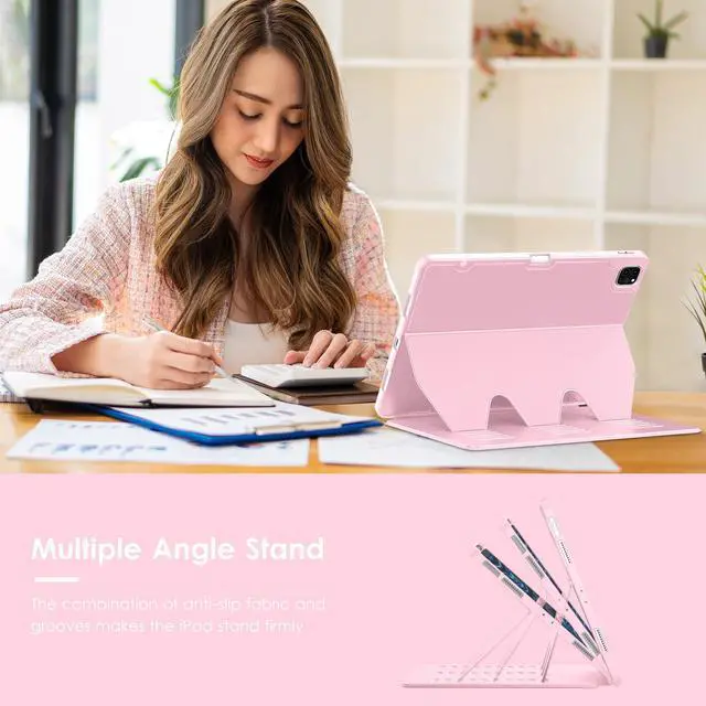 VIKESI Case for iPad Pro 12.9 6th / 5th / 4th / 3rd Generation Case 2022/2021/2020/2018,Multiple Angles Magnetic Stand Cover,Shockproof Soft Back,Pencil Holder,and Auto Sleep/Wake,Pink