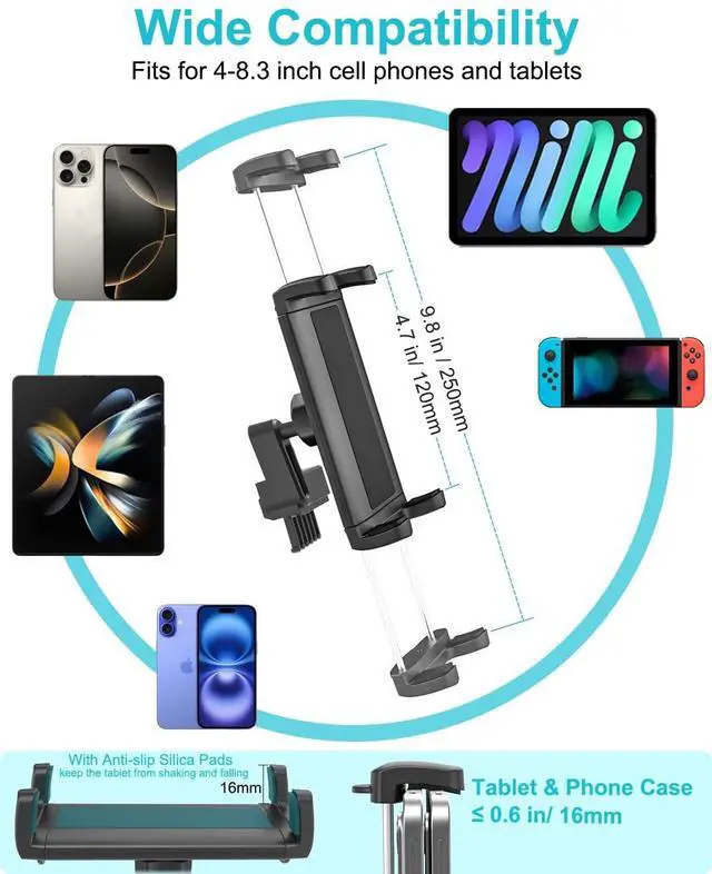 Say goodbye to worries about slipping or falling travel with confidence! Equipped with soft non-slip silicone pads to prevent damage to the wooden dashboard panel. (After removing the hook, no trace will be left on the air outlet/dashboard). ^^ Wide Compability - 4- 8.3" DevicesTesla ac vent tablet holder has spring clips that pull out and retract which makes it very easy to put the device in or take it out. Tablet clamp is fit for 4- 8.3" device with thin or thick case, such as iPad Mini 7 6 5 4 3 2, Galaxy Z Fold 7 6 5 4 3, Galaxy S/ A Series, iPhone 16 15 14 13 12 11 Pro Max, iPhone 16 15 14 Plus, iPhone 13 12 Mini, iPhone Max Xs XR X 8s and more devices. ^^ Easy InstallationNo tools required, just insert the hook clip into the vent, push to the left and tighten the knob. These components are lightweight, making them easier to carry when traveling. Tesla tablet holder is built to last with protective rubber clips to prevent scratches and drops, and non-slip rubber pads to keep your device stable.