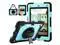 for iPad 6th Generation/iPad 5th Gen/iPad Air 2/iPad Pro 9.7" Case with Cute Key Chain, Rugged Protective Case with Rotating Stand & Shoulder Hand Strap for iPad 6th/5th/ Air 2 (Black+Aqua)