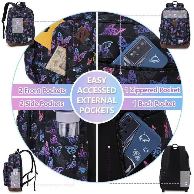 ^^ Water Resistant: This school bag is made of water-resistant polyester. It can completely protect the documents, books and computers in the college backpack from being damaged by water seepage. No More worrying about getting wet items in the rain.