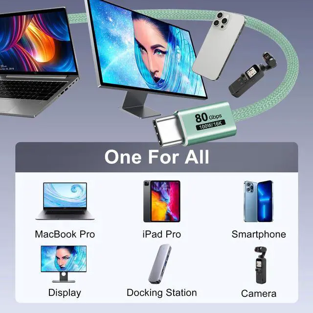 Wide CompatibilityUSB 4 Cable fully compatible with Thunderbolt 4/3 and USB-C devices, for Apple Studio Display, Mac Studio, MacBook, Surface, iPad Pro, iPhone 16,