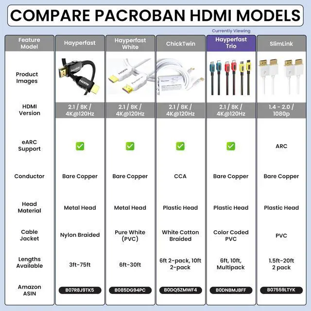 Support: Enjoy seamless streaming and gaming with Pacroban HDMI cables, delivering superior 8K resolution at 60Hz and 4K at 120Hz for crystal-clear visuals and smooth motion. Perfect for gaming consoles, PCs, and media players.